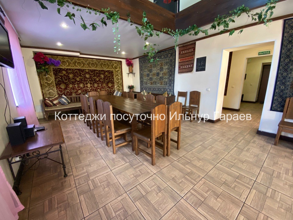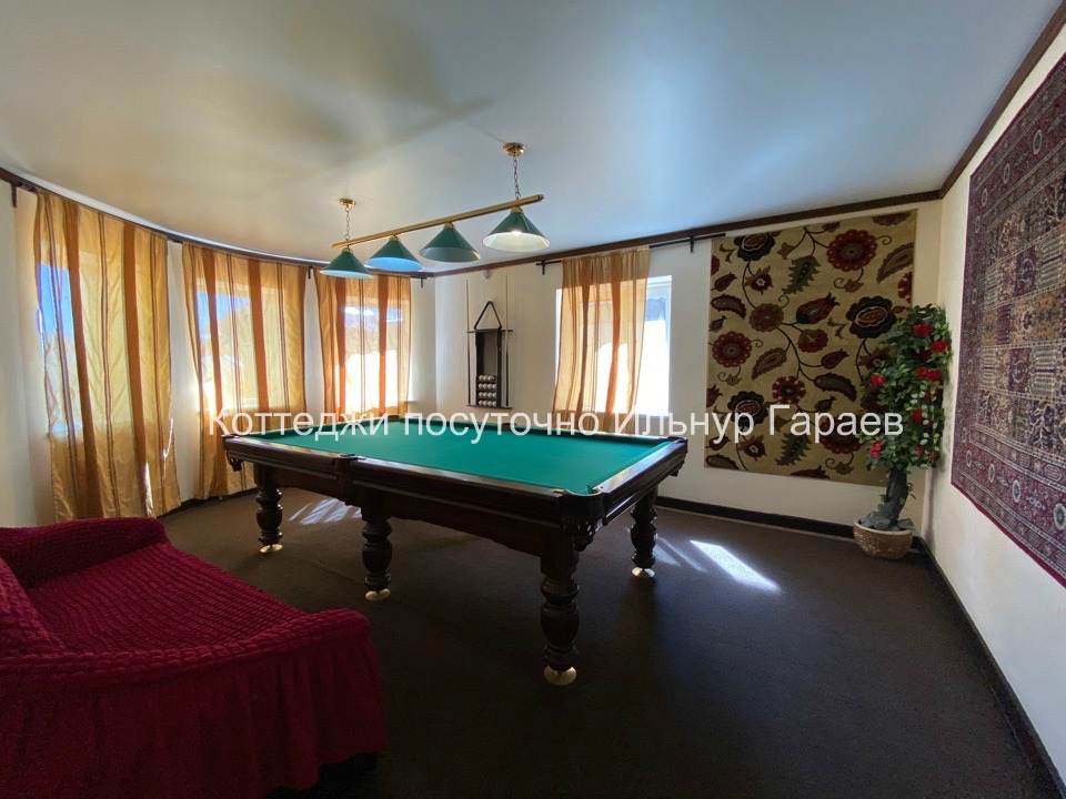 2 этажа , 300кв.м. Вместимость 20 человек . В доме: общая кухня, бильярдная, холл, сауна, баня, мягкая мебель для гостей, общая комната с телевизором. Для сна: 3 спальные комнаты + диван (2 места) (2 шт.). На прилегающей территории: барбекю, мангал, парковка для автомобилей, беседка, бассейн (3X4) , баня.