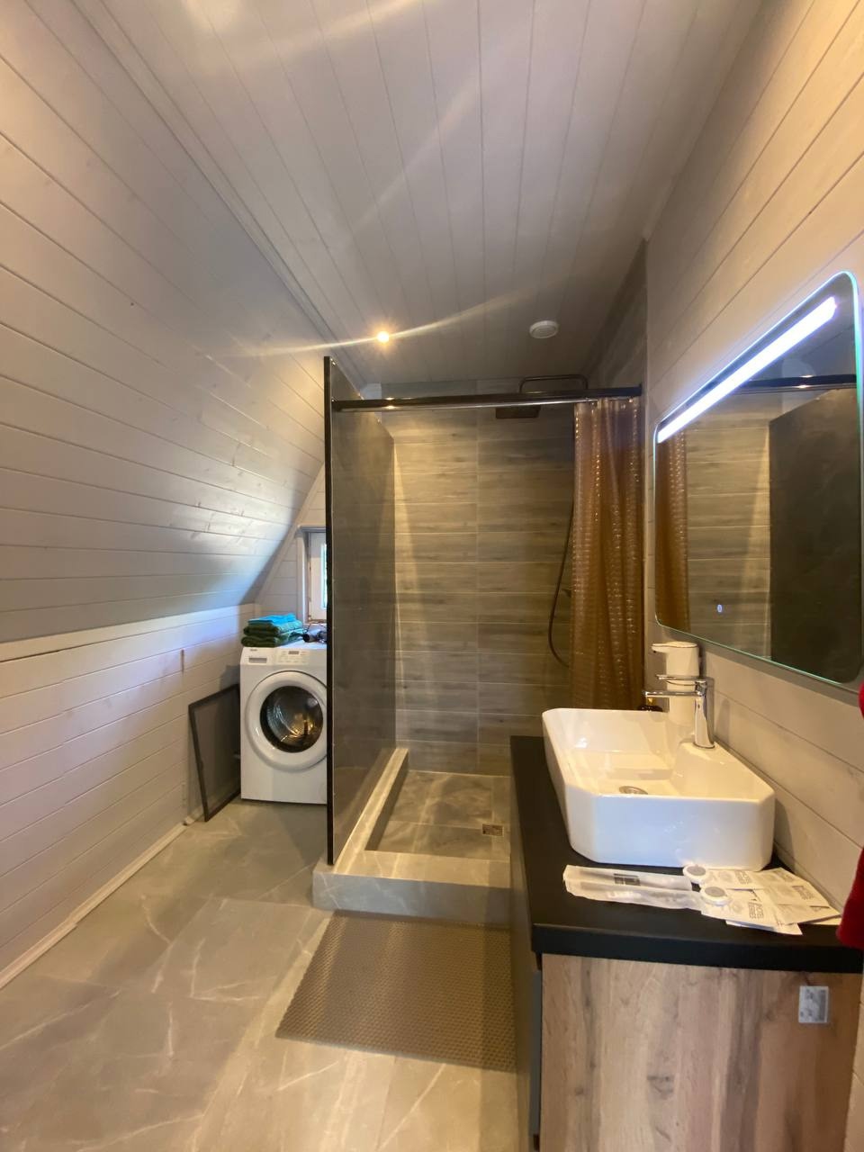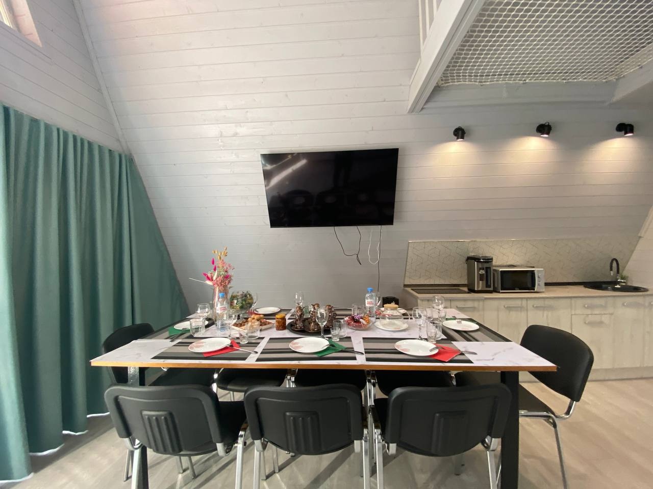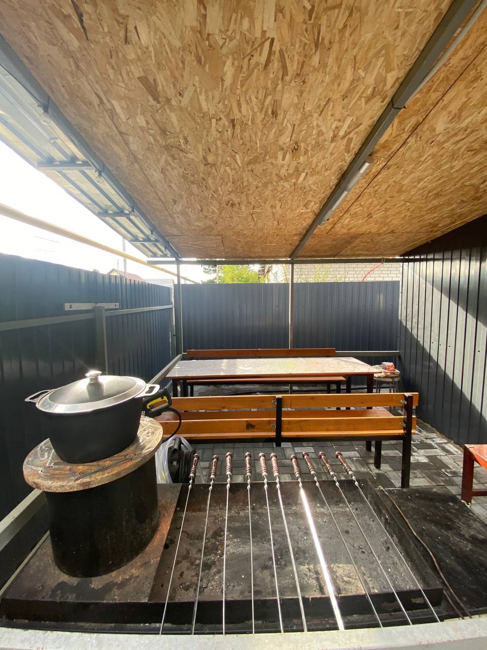 70 кв. м., двух этажный , 6 спальных мест, стол на 8 персон , кухня, вся бытовая техника и посуда, вайфай , плазма, халаты , с/у , душевая, сауна электрическая, так же есть чан, мангальная зона, беседка , решетки для шашлыка, казан, закрытая территория, парковка. Стоимость до 10 человек.