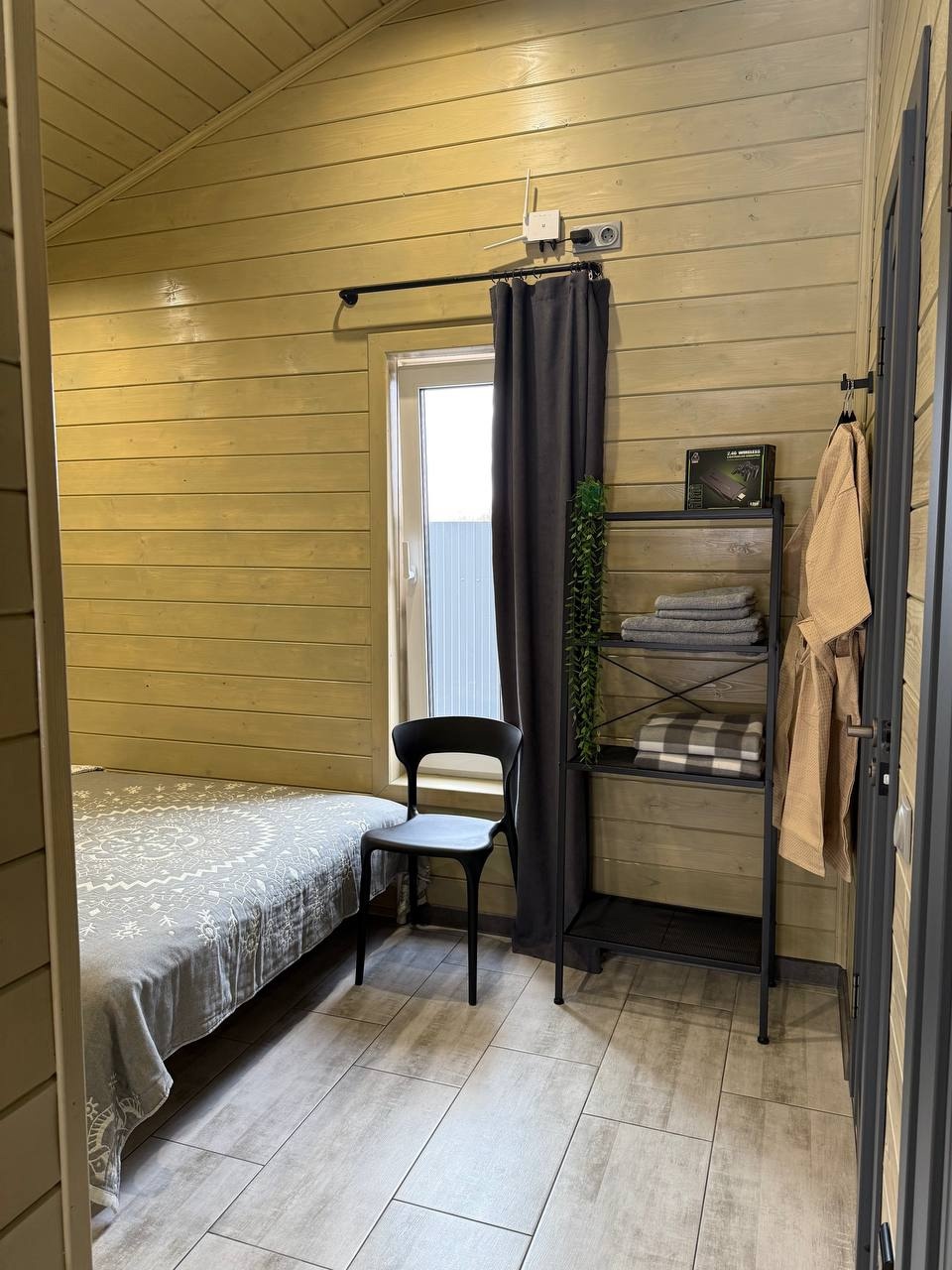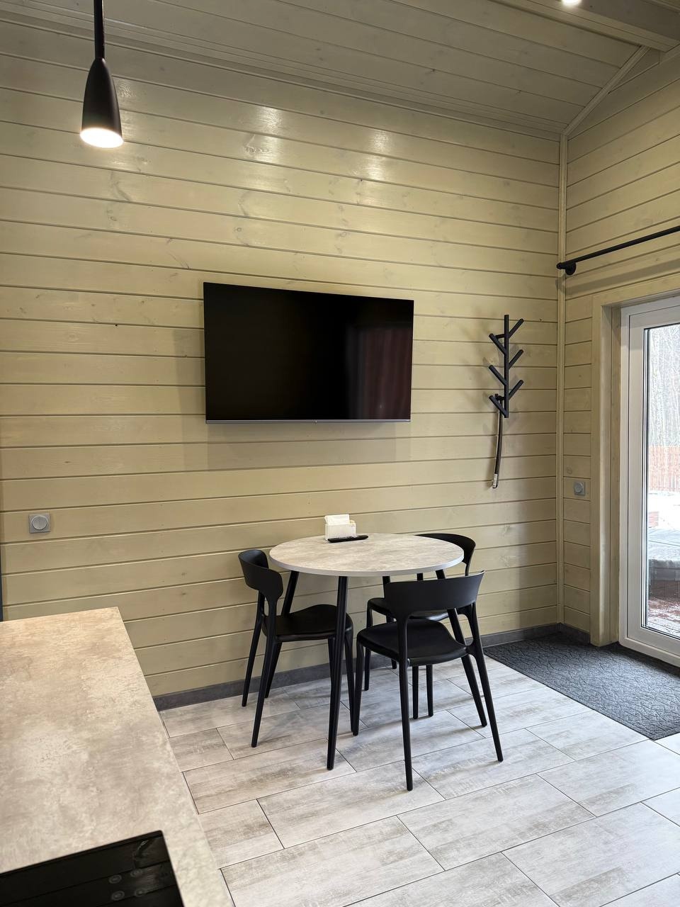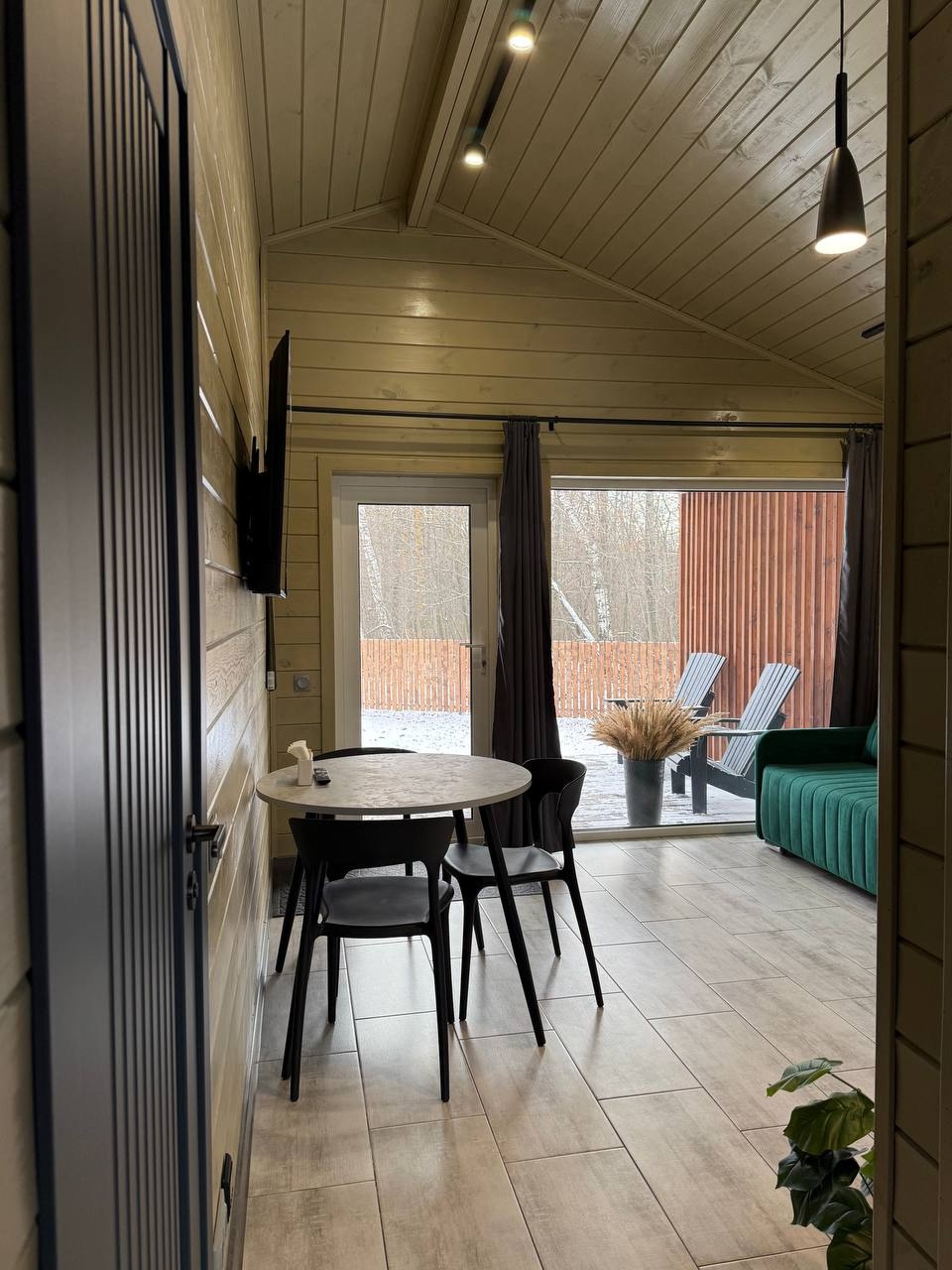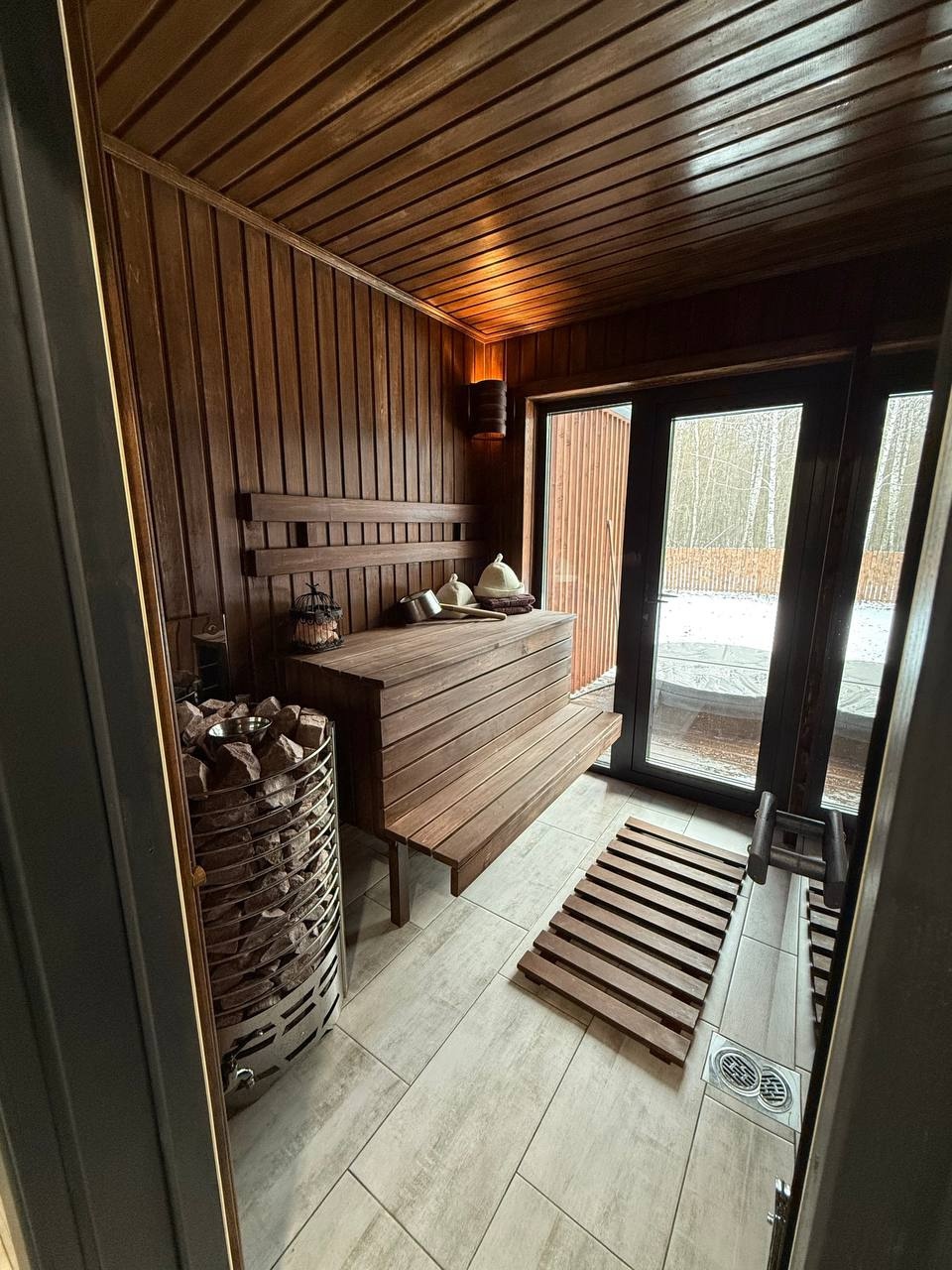 Дом 40 кв.м., по всему дому теплые полы , стол на 4 персон , кухня, вся бытовая техника и посуда, плазма, вай-фай , двух спальная кровать, диван раскладной, баня с панорамным видом в лес, с выход в фурако, терраса, мангальная зона, парковка, рядом лес. ( Баня без веников) Фурако на террасе под крышей (Входит в стоимость)