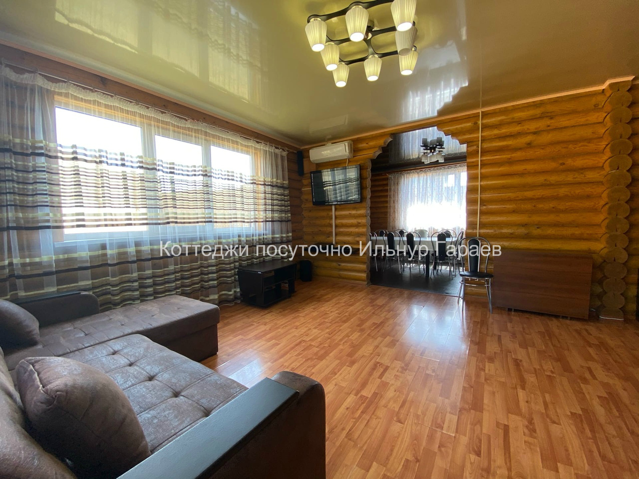 На территории коттеджа дом из сруба и отдельный банный комплекс Банкетный зал до 20 персон, 3 спальни,14 спальных мест, кухня, вся бытовая техника и посуда, бильярд , бассейн, сауна, музыка, TV , беседка, мангал, парковка.