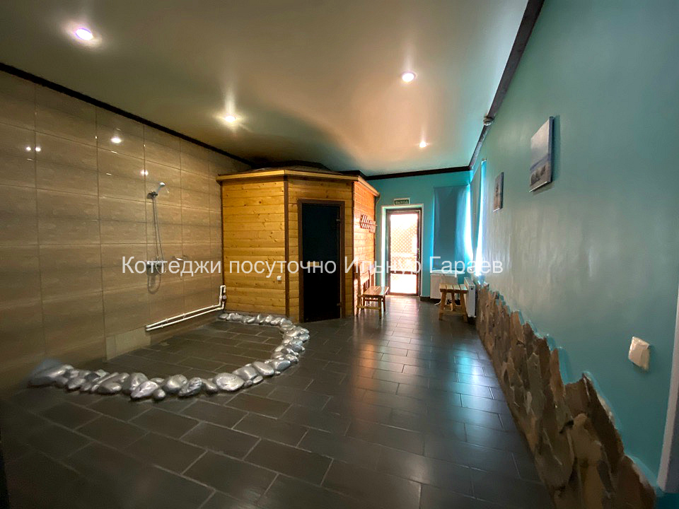 350кв.м. Вместимость 15-20 человек , 12 спальных мест. В доме: общая кухня, бильярдная, мансарда, холл, баня, 2 бассейна ( теплый и холодный ). Прилегающая территория , парковка , беседка , мангал.